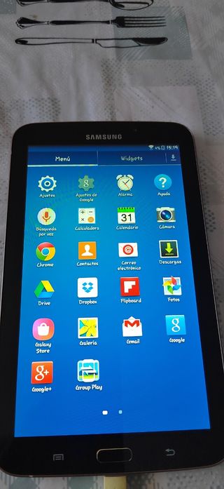 Tablet SAMSUNG GALAXY TAB 3. Funciona, lo único que no puedo actualizar el Android. Si tienes los conocimientos para hacerlo. Para piezas también. La vendo sin cable ni cargador.