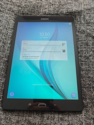 Samsung Galaxy Tab A. Modelo: SM-T510; 10,1 pulgadas Esta en muy buen estado y funciona perfectamente. Restablecida de fábrica y en su caja como si estuviera salida de tienda Batería de 6150 mAh; cámaras de 8 y 5 mp; procesador Octa Core; almacenamiento de 32 GB; en color gris oscuro. Tiene un pequeño desperfecto en un lateral que no afecta en absoluto al funcionamiento. Perfecta para la Vuelta al Cole o al trabajo Cualquier duda, pregunta sin problema Hago envíos.