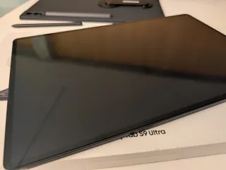 Tableta Samsung Galaxy Tab S9 Ultra en color negro. Incluye: -S Pen -Funda teclado. -Funda normal. -Protector pantalla cristal templado. Poco uso. Muy cuidado. Siempre usado con protector de pantalla de cristal templado. En la funda con teclado se puede ver accesorio magnético para el apoyar el teléfono.