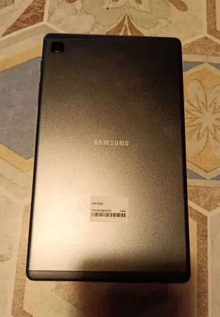 Tablet Samsung Galaxy Tab A7 en color gris. - Modelo SM-T500. 3GB RAM/32GB ROM - Pantalla de 10.4 " en perfecto estado sin arañazos ni marcas de uso. - Procesador Octa-core. - Batería de 7040 mAh. a medio uso. -El aspecto es bueno, pero presenta algún desperfecto en las esquinas y en la carcasa trasera. -En su embalaje original con manuales. -Se entrega con funda de regalo.