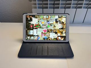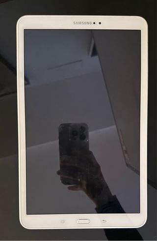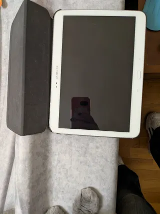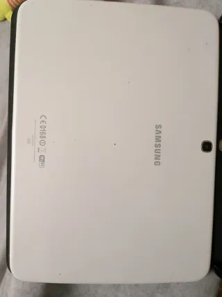 Tablet Samsung Galaxy en color blanco. - Ligero desperfecto, se que se ve mal, pero la pantalla y el táctil siguen funcionando bien - Funda protectora incluida. - Custom ROM lineageOS - El precio lo puedo hablar, solo mandame un mensaje
