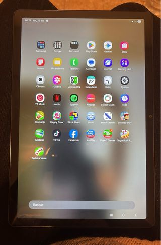 Tablet Samsung Galaxy Tab A6. - Pantalla de 10.1 pulgadas. - Diseño delgado y ligero. Las burbujas es por el plástico protector. Va un poco lenta ya que es antigua, pero para niños ver videos o juegos es perfecta.