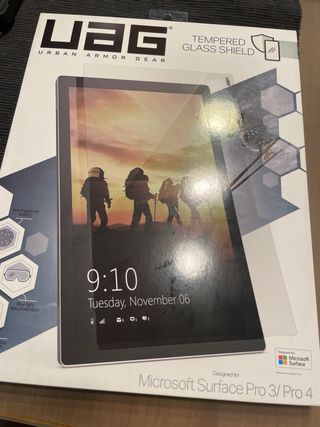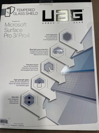 Vendo protector de pantalla de cristal templado UAG para Microsoft Surface Pro 3 y 4. Está nuevo y sin usar. - Cristal templado de alta calidad. - Diseño específico para Surface Pro 3/4. - Protección contra arañazos y golpes.