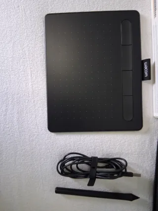 La he usado muy muy poco, solo para probarla. Funciona perfectamente y la superficie está sin desgaste apreciable. Ideal para dibujo digital, ilustración, retoque fotográfico y diseño gráfico. Incluye: ✅ Tableta Wacom Intuos S ✅ Lápiz original Wacom ✅ Cable USB ✅ Caja original (con ligeras abolladuras, solo estéticas) *Precio negociable*