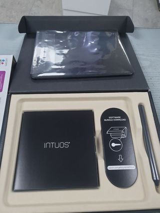 Tableta gráfica Wacom Intuos en color negro, en su caja original. Incluye lápiz y 2 softwares de regalo. Botones personalizables en el lateral.