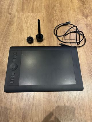 Wacom Intuos Pro en buen estado. Ideal para diseño gráfico, ilustración, edición de fotos y trabajo digital de precisión. La superficie activa es de 15,7 x 9,8 cm, cómoda y muy sensible a la presión. Incluye: - Caja y documentación - Tablet Wacom Intuos Pro - Lápiz con sensibilidad a la presión - Cable de conexión - Posalápiz oficial con pack de puntas intercambiables - CD de instalación - Adobe Photoshop 6 Elements incluido Tiene algunas pequeñas marcas de uso como se observa en las fotos pero está buen estado y funciona perfectamente. Se entrega en mano.