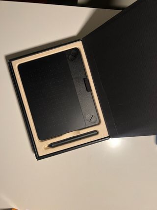 Tableta gráfica Wacom One con lápiz incluido. Ideal para dibujar y diseñar. - Tableta gráfica. - Lápiz con repuesto de puntas - Cable de conexión Wacom original (es el único que funciona para conectar al ordenador) En perfecto estado, usada solo 2 veces, la compré para realizar ilustraciones digitales pero nunca le dediqué el tiempo a aprender a hacerlo.