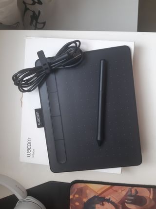 Tableta gráfica Wacom Intuos de cable sin pantalla. Esta en perfectas condiciones ya que solo se utilizó un par de veces y ha estado guardada en su caja. El código de software ya está canjeado y una de las 4 puntas táctiles esta utilizada Precio no negociable