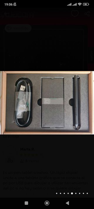 Table gráfica marca Wacom, one by Wacom Está nueva, es la talla M. Me la regalaron y la he usado solo una vez. Se entrega tal y como se ve en la imagen con todos los precintos originales y de regalo unas puntas para el lápiz también de la misma marca original. El precio nuevo en la página oficial de la tableta y las puntas asciende a 66€. En la cuarta imagen se ve los detalles que aparecen en la página oficial de Wacom, podéis consultarlo. En la quinta imagen insertó las medidas.