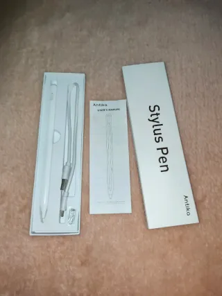 Lápiz táctil inteligente de la marca Antika, diseñado para tablets y móviles. Su acabado es blanco y elegante. - Incluye cable de carga. - Manual de usuario.