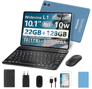 NUEVA. Fezawio F10. 22GB + 128GB + 1TB Expandable Storage, la tecnología de pantalla panorámica L1, pantalla ips de alta definición con una resolución de 1280 x 800, así como una cámara frontal de 5 megapíxeles y una cámara trasera de 8 megapíxeles. transmisión inalámbrica de doble banda 2.4G/5G permite a la tableta fezawio proporcionar una conectividad WIFI estable, Con Bluetooth 5.0 incorporado
