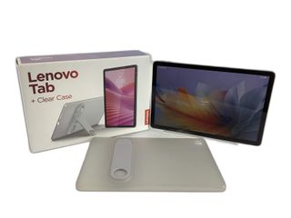 Tablet Lenovo en acabado gris. - Diseño elegante y moderno. - Logo de Lenovo en la parte superior.