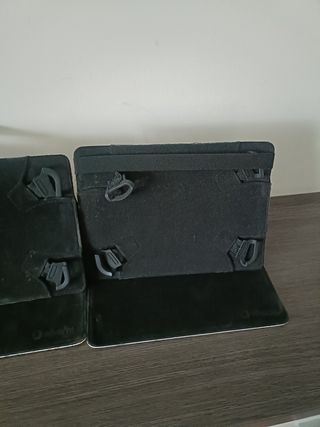 Funda protectora para tablet Android de 10.1 pulgadas. - Color púrpura. - Material tipo piel. - Costuras decorativas. Comprada por error y no se pudieron devolver por pasar el plazo de devolución. La ventaja que tiene está funda es que es estándar y se adapta bien a cualquier tipo de tablet
