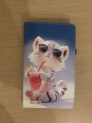 Funda para tablet tab A11 8.7. Dimensiones 211,0 mm de alto × 124,7 mm de ancho × 8,0 mm de grosor. Divertido diseño de un gato blanco con gafas de sol y un cóctel. - Diseño llamativo y original. - Protección para tu tablet.