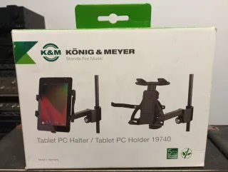 Soporte para tablet K&M modelo 19740, fabricado en Alemania. - Diseñado para sujetar tablets. - Incluye brazo y abrazadera. - Acabado en negro.