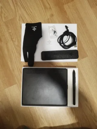 Tableta Huion, en perfecto estado. Cuenta con, cable de conexión a dispositivo (tanto ordenador como móvil) Lápiz táctil. Guia de uso de la tableta. Guante dibujante deslizante. Piezas de recambio de punta de lápiz táctil, más diferentes piezas de cambio de grosor. Adaptador para móvil táctil (Apple android) de cualquier tipo. + Justificante de compra oficial. Precio 35€ solo usado un par de veces.
