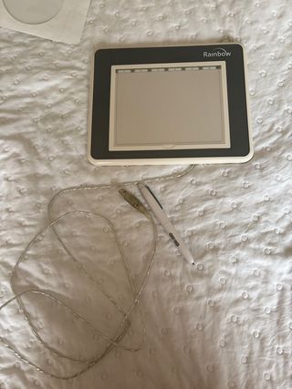 Tableta gráfica Rainbow, ideal para tus creaciones digitales. Incluye lápiz y cable. - Superficie de dibujo amplia. - Diseño moderno y funcional.