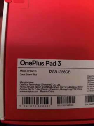 Tableta OnePlus Pad 3 en un elegante acabado gris violeta. - Diseño moderno y estilizado. - Acabado mate.