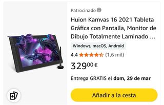 Tableta gráfica Huion Kamvas 16 (2021) en color negro. Se encuentra en excelente estado, como nueva. - Incluye lápiz óptico y soporte. - Incluye guantes de dibujo. - Incluye cables de conexión. La vendo porque ya no dibujo. En amazon cuesta 329.
