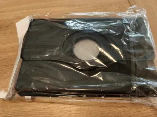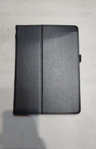 Funda negra para tablet, en buen estado. - Resistente y protectora. - Diseño elegante y discreto. - Incluye soporte desplegable.