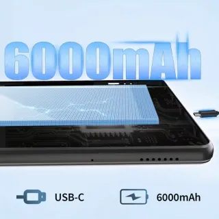 Tablet con gran capacidad de batería y puerto USB-C. - Batería de 6000mAh. - Conexión USB-C.