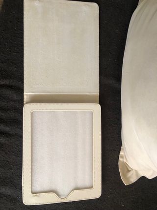 Funda protectora para tablet con un acabado liso y elegante. - Material: Piel sintética. - Color: Blanco.