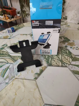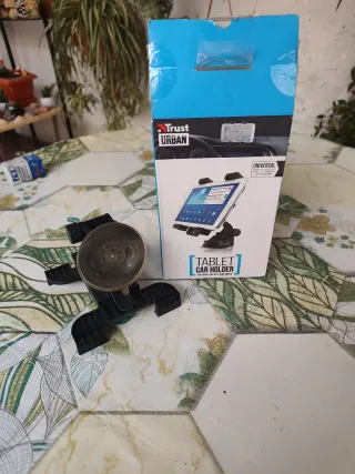 Soporte para tablet de coche de la marca Trust. Ideal para mantener tu tablet a la vista mientras conduces. - Ventosa de succión para parabrisas o salpicadero. - Brazo ajustable para diferentes ángulos. - Soporte universal para tablets de 7 a 11 pulgadas.