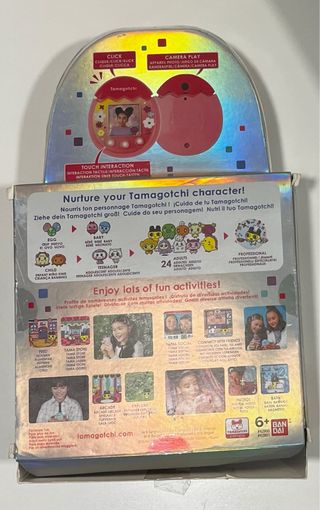 Tamagotchi original, versión Gen 2. Un clásico juego de mascota virtual. - Diseño de la caja con personaje y elementos decorativos. - Incluye el Tamagotchi en su embalaje original.