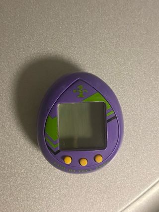 Tamagotchi Nano Evatchi con diseño inspirado en Evangelion Unidad 01. Funciona perfectamente, testeado, he jugado con él. Tiene pequeñas marcas de uso del dueño anterior. - Color morado con detalles verdes. - Botones amarillos. - Pantalla digital.