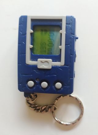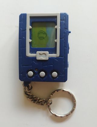Vendo un Tamagotchi Digimon de Bandai en perfecto estado. Es de color azul y tiene un diseño de piedra. Incluye una cadena para llevarlo colgado. - Diseño azul con textura de piedra. - Incluye cadena metálica. - Está en excelentes condiciones.