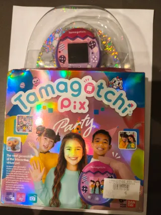 Tamagotchi Pix Party, la nueva generación de mascotas virtuales interactivas. - Diseño en forma de huevo. - Pantalla a color. - Incluye accesorios para personalizarlo.