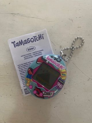 Tamagotchi Gen 1 retro con diseño divertido. - Incluye manual de instrucciones. - Llavero metálico.