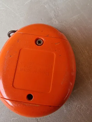 Tamagotchi clásico del año 2004 con un diseño vibrante en amarillo y naranja. Un juguete retro para coleccionistas y nostálgicos. No sé si funciona, yo lo he intentado se pero no lo he conseguido. Precio orientativo, no sé lo que puede valer en este estado.