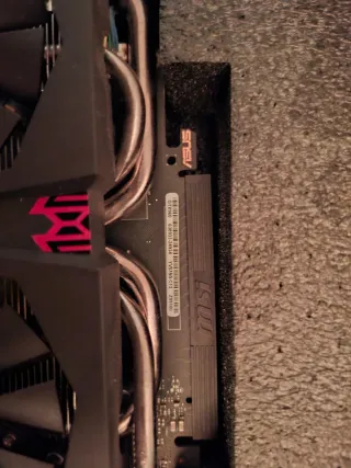 Tarjeta gráfica MSI con ventiladores duales. - Diseño con dos ventiladores para una mejor refrigeración. - Logo de MSI en el centro de los ventiladores. - Acabado en negro y plateado. - La vendo por cambio de gráfrica.