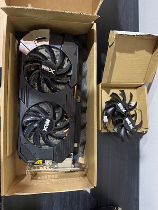 Tarjeta gráfica XFX RX 580 con 8GB de memoria VRAM. Cuenta con un diseño de doble ventilador para una mejor refrigeración. - Diseño de doble ventilador. - Carcasa con acabado de fibra de carbono. No tengo caja original