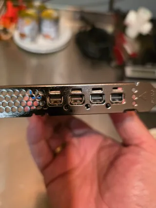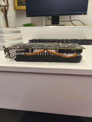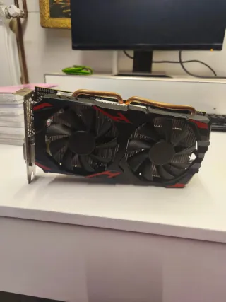 Gráfica en perfecto funcionamiento, color negro con detalles en rojo y sistema de doble ventilador que mantiene buenas temperaturas. Cuenta con 1 puerto HDMI y 3 DisplayPort, ideal para multi-monitor o gaming en alta resolución. 🎮 Rendimiento aproximado en 1080p: • Fortnite: 120–160 FPS • Valorant: 200–300 FPS • CS:GO: 250–350 FPS Perfecta para jugar en calidad alta a 1080p sin problemas.