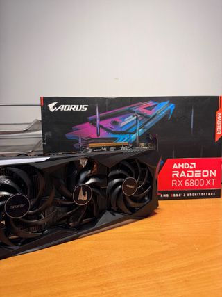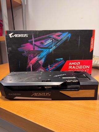 Tarjeta grafica Gigabyte AORUS Radeon RX 6800 XT - Impecable + Caja Como nueva y muy cuidada Version con pantalla LCD Es una bestia para jugar en 1440p con altos FPS у muy capaz en 4K. Al ser un modelo premium de AORUS tiene una refrigeración espectacular y es muy silenciosa. Se entrega limpia y en su embalaje original con toda la documentación.