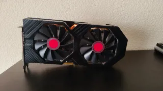 Vendo tarjeta gráfica AMD RX 580 GTS 8GBS - 8 GBS de RAM dedicada. -Salida PCI express, 2 ventiladores. - Usada únicamente para videojuegos, no minería. -Perfecto estado de funcionamiento. -Se entrega en envoltorio antiestático (No incluye caja original.) -Hago envíos. -Acepto cambios por SSDs.