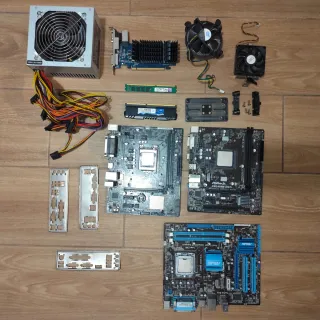 Lote de componentes para ordenador - Placa base ASRock FM2A68M-DG3+. - Placa base ASUS P5G41T-MLX - Placa base ASUS H110M-D - Fuente de alimentación 500W TooQ TQEP-500SSE-O - Tarjeta gráfica NVIDIA GeForce GT 210 1GB - Módulos de memoria RAM. Kingstone DDR3 2GB 1333 MHz, G.SKILL DDR3 4GB 2133 MHz - disipadores AMD y INTEL - Procesadores INTEL i5-6400, INTEL PENTIUM 06 E5700, AMD A6-5400 funciona todo