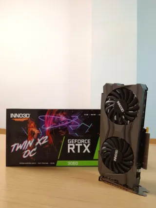 Modelo compacto, silencioso👌🏻 Perfecta para gaming🕹️ Se vende tarjeta grafica gaming INNO3D TWIN X2 RTX 3060 12GB GDDR6 Ideal para ordenador gaming. Con caja original. Cualquier duda chat, estamos para ayudar. Servicio 5⚡ en nuestras valoraciones. tags: PC gaming piezas combo placa CPU GPU Ryzen 9 9950 9900 9800 7900 7800 7700 X 7950 X3D Intel i9 i7 i5 i3 14900 14700 13900 13700 12900 12700 12600 K RAM DDR5 DDR4 16 32 GB SSD 512 1 2 TB Tarjeta GRAFICA RTX 3090 3080 3070 3060 4090 4080 4070 4060 5090 5070 5080 Ti SUPER RX 9070 7800 6700 6600 XT AIO Cooler