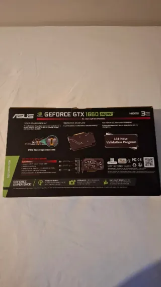 Tarjeta gráfica Asus TUF Gaming GeForce GTX 1660 SUPER. - Funciona perfectamente, usada para jugar - Modelo OC con 6GB de memoria GDDR6 - Tecnología TUF Gaming para mayor durabilidad - Compatible con Turing Shaders, GDDRE, DirectX 12 y ANSEL -La entrego con su caja original