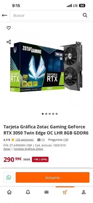 Tarjeta Gráfica RTX 3050 8GB Zotac