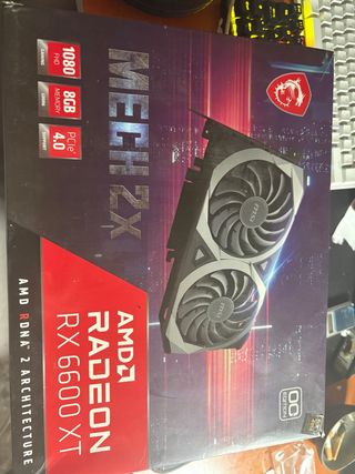 Tarjeta gráfica MSI Radeon RX 6600 XT Mech 2X. - 8GB GDDR6. - Soporte PCIe 4.0. - Resolución 1080p FHD. - Arquitectura AMD RDNA 2. Pracricamente nueva , funciona como el primer dia y rinde muy muy bien se vende po cambio a un par ee series superiores !
