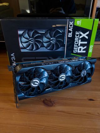 Tarjeta gráfica EVGA GeForce RTX 3070. - Modelo BLACK - 8GB GDDR6 - DLSS & Ray Tracing - Refrigeración con tres ventiladores - En muy buen estado. No se ha usado mucho porque con el trabajo no tengo tiempo para gaming. - Entrega en mano (preferible). Para envios, puedo activar wallapop (no preferible).