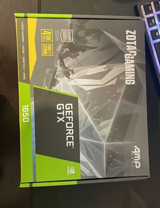 Tarjeta Gráfica ZOTAC GAMING GeForce GTX 1650 AMP Core GDDR6 Tarjeta gráfica ideal para gaming 1080p y equipos pequeños. Uso de 2 años, en buen estado, con un poco de polvo pero nada que no se pueda limpiar. GPU NVIDIA GeForce GTX 1650 Memoria 4 GB GDDR6 Consumo 75 W. Conector 6 pines 3 salidas de vídeo simultáneas: DisplayPort 1.4, HDMI 2.0b, DVI-D Dimensiones: 162.4x115.2x35.3 Doble ventilador de 70mm PCIe 3.0 Compatible DirectX 12 y Vulkan