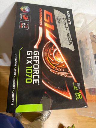 Tarjeta gráfica Gigabyte GeForce GTX 1070 G1 Gaming con 8GB de memoria. - Modelo G1 Gaming. - Tecnología WINDFORCE. - Edición OC. - Compatible con RGB Fusion. - Preparada para VR. - Soporta DirectX 12. La vendo porque tengo otra, precio negociable, venta solo en mano o envío fuera de wallapop, se puede probar sin problema, nunca usado el OC.