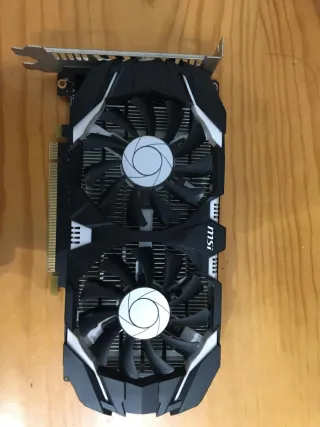 Tarjeta gráfica MSI GeForce GTX 1050 Ti con 4GB de memoria VRAM. Ideal para gaming y diseño. En muy buen estado. - Modelo: GTX 1050 Ti - Memoria: 4GB GDDR5 - Interfaz: PCI Express - Conectividad: DisplayPort, HDMI, DVI