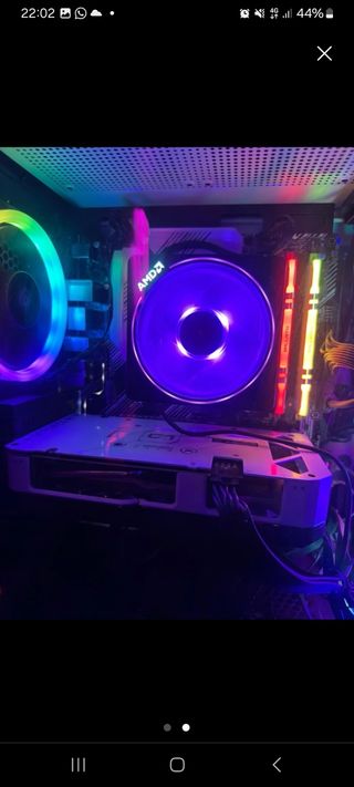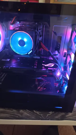 Ordenador de sobremesa para gaming y tarea, esta como nuevo perfecto estado de su funcionamiento. Diseño moderno con iluminación RGB. - Windows 11 Pro - Placa base ASRock B450 Pro4 - Procesador AMD Ryzen 5 2600 3.40/3.90 GHz 6 Núcleo 12 Hilos - Tarjeta gráfica MSI NVIDIA GTX 1050 Ti 4GB - 16GB Memoria RAM DDR4 Kingston 3200 MHz - 240 GB SSD Kingston - 1Tb HDD Disco Duro - Fuente de alimentación 650W - Caja NOX con 4 ventiladores ARGB Nueva todavía con plástico - PC tiene instalado juego para probar su rendimiento - Ojos (Solo torre sin monitor) - Se puede ver y probar sin ningún problema
