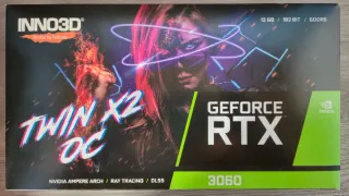 Tarjeta gráfica INNO3D Twin X2 OC con 12 GB de memoria GDDR6. Esta como nueva. Se vende con embalaje original. Solo uso domestico. Nunca usada para mineria. - Modelo: GeForce RTX 3060 - Memoria: 12 GB GDDR6 - Interfaz de memoria: 192 BIT - Soporte: Ray Tracing / DLSS