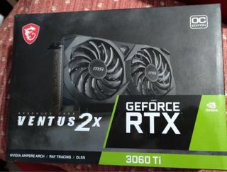 Tarjeta gráfica MSI GeForce RTX 3060 Ti Ventus 2X OC Edition con 8GB de VRAM GDDR6. - Arquitectura NVIDIA Ampere. - Soporte para Ray Tracing y DLSS. - Edición OC (Overclocked). - Refrigeración con doble ventilador.